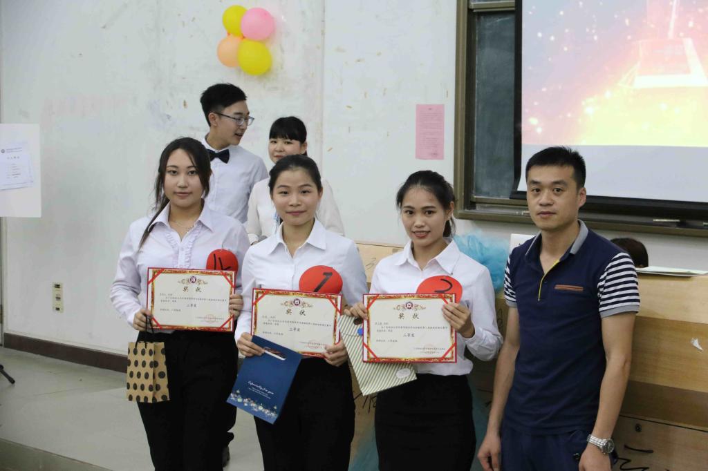 本次比赛分为小组对抗,两两对抗,职场零距离三个环节。比赛中,两组选手在阐述,谈判,面对不同的选题的过程,每一次交锋都无不展现出选手们出色的经济头脑和交际能力。在本次大赛的最后一个环节,由3名选手依次进行个人展示PPT,内容涉及到个人简介,热衷岗位,薪资要求等。评委老师根据选手的展示进行提问,各位选手以自信满满的回答赢得了评委老师的称赞和在场同学们的阵阵掌声。