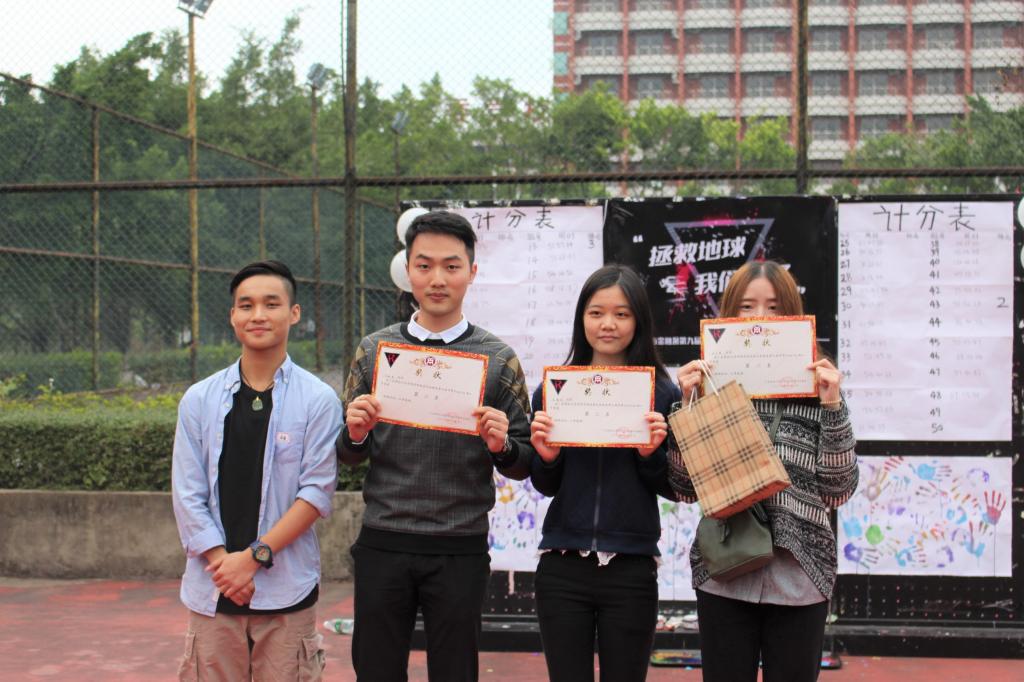 最后由我系学生会副主席黄胤霖为获奖小组颁发证书及奖品并发表感言,他对大家在雨中仍坚持不懈的精神表示肯定。大家在游戏中锻炼了身体,收获了友谊,在风雨中磨砺了意志,也懂得了团队合作的重要性,使得我系学生的联系更紧密。本次活动已经结束,欢乐仍在继续,华商running man,我们来年再战!
