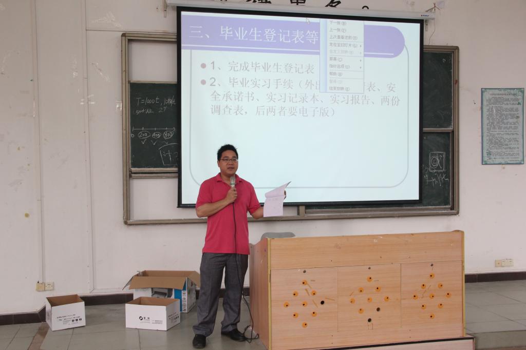 为了更好的促进我系2013届毕业生就业和毕业生论文答辩的顺利进行,在2013年5月13日励志楼A108,举行经济系2013届毕业班第二次就业指导大会暨毕业论文答辩动员会。会议由经济系学工副主任黄国富老师和教务员左光宇老师主持,2009级312名学生参加。会议一开始,先由左光宇老师将第二天的答辩会安排和注意事项告知给在座的各位同学。接着,黄国富老师详细地说明了毕业生就业方法技巧和注意事项,由各班班长负责发放本班同学的毕业相关资料,核准毕业生登记表内容。会议的最后内容是由在场的同学自由提问,自由交流就业面试小技巧。同学们兴致很高,大家畅所欲言,各抒己见,会议现场展开了热烈的讨论。面对同学们的踊跃提问,黄国富老师都一一给了细心的解答,让在场所有同学受益良多,会议在同学们的意犹未尽中结束了。
