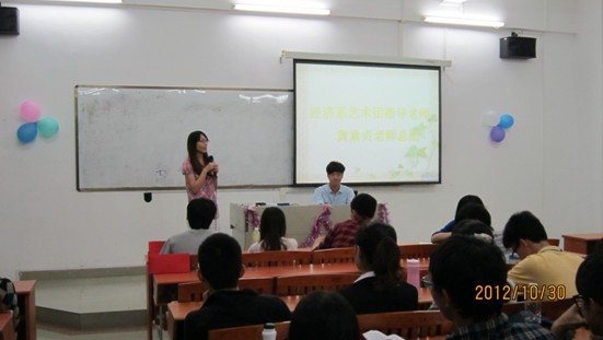 金秋十月,正值秋高气爽之际,我系艺术团于2012年10月30日在创新楼E301举行了自换届以来的第一次全团大会。莅临本次会议的嘉宾有:学生会指导老师黄秋铭老师,艺术团指导老师黄素贞老师,经济系学生会欧阳婷主席,黄湘晖副主席,郑永坚副主席。