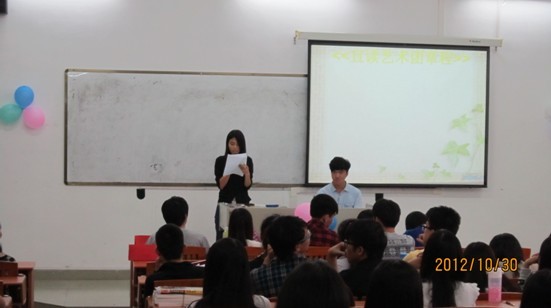然后,文娱部部长李晓君为新一届的艺术团成员们介绍了文娱部的基本情况,并且为我们宣读的艺术团的有关规定。