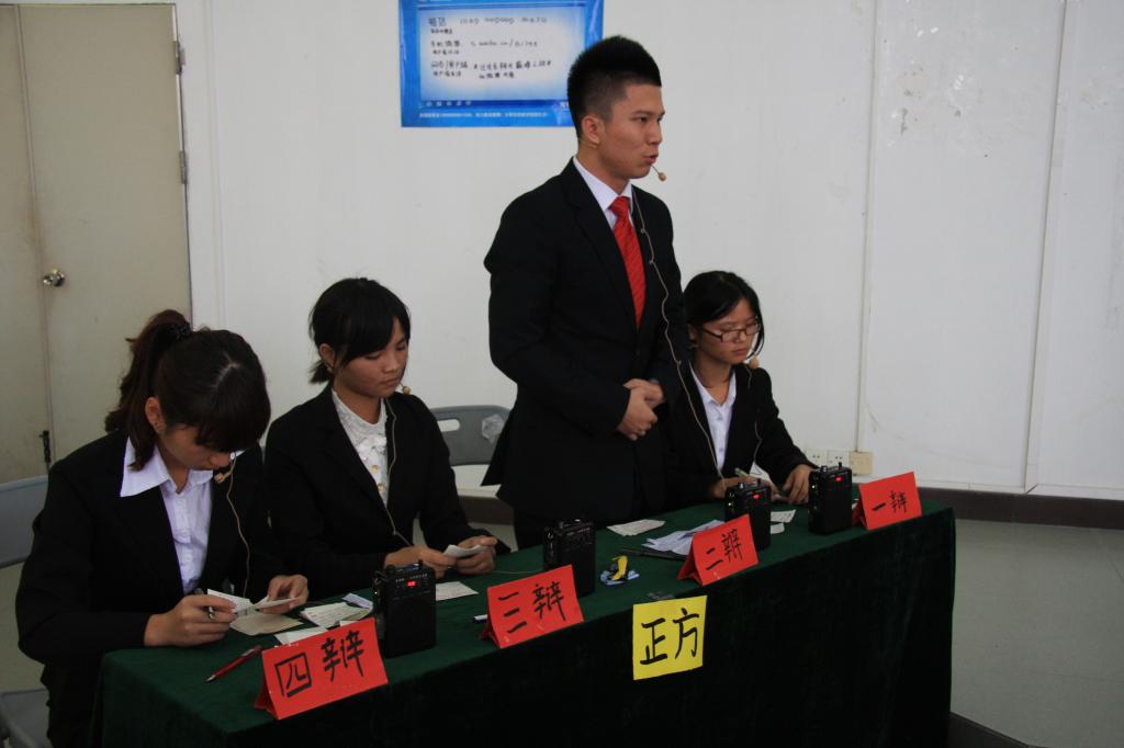 2012年11月20日下午一点,经济系第五届“新生杯”总决赛在励志楼B208如期举行。到场的嘉宾有12级辅导老师王国庆老师,12级辅导老师宋可老师,院学生会主席陈挺师兄,前经济系学生会主席张佳欣师姐等,评委则由院辩论队队长陈艺辉师兄,系辩论队队长林国嘉师兄,系辩论队资深顾问罗坚锐师兄等担任。