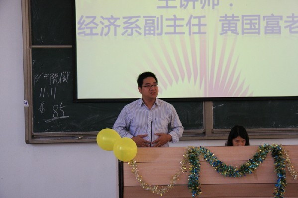 2012年11月13日下午“文明纪律”教育大会在励志楼A408召开。本次出席嘉宾有经济系主任王德高教授,经济系副主任黄国富老师,经济系艺术团指导老师黄素贞老师,经济系学生会指导老师黄秋铭老师,经济系辅导员杨思佳老师、王国庆老师和宋可老师。此外,经济系学生会主席欧阳婷师姐,经济系学生会副主席黄湘晖师姐、郑永坚师兄、王伟潮师兄和经济系学生会常委任杰师兄,以及经济系各班班委也都出席了本次会议,场面十分热闹。