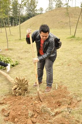 届时,各位成员齐齐动手,如火如荼地开始了植树活动。锄头看起来十分笨重,但男生们并没有半句怨言,很快地就挖了一个大小适宜的坑。女生们紧接着把树苗栽进树坑里,然后埋上土。虽然过程当中遇到不少“状况”,但不管泥有多硬,石有多坚,都不能阻碍我们这颗充满爱的心。小树苗在风中摇曳着,仿佛在向我们道谢。此刻,之前所有的辛劳似乎都化为虚有,我们绽放出会心的笑。
