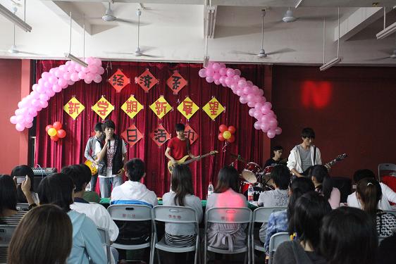 在主持人的开场白之后,由左轮乐队和DNA街舞团队为我们带来精彩的开场秀拉开了本次晚会的序幕。精彩的节目让大家很快就融入到欢快的气氛中,而在“击鼓传花”的互动环节中,更是让台下观众热情高涨,气氛更活跃。小品、民族歌曲、诗歌朗诵、古筝以及吉他表演等多个节目。年轻动感,充满青春气息。由国商一班带来的小品《如此人才》更是幽默诙谐,引来了台下观众阵阵笑声,并不断的响起掌声和欢呼声。大合唱《爱因为在心中》营造了温暖宁静的气氛,而由国贸七班带来的《舞蹈青春》的舞蹈歌唱则是动感十足,魅力四射,洋溢着当代大学生的青春气息。