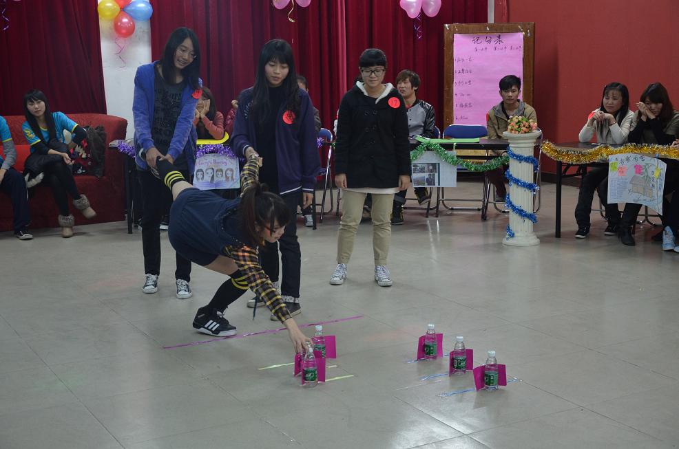 经济系学生会第二届寝室文化节决赛 2011年12月4日晚上7点30分,由经济系学生会生活部举办的寝室文化节决赛在厚德楼c101如期举行,此次活动邀请了经济系学生会指导老师郭锦荣老师,经济系11级辅导员黄素贞老师,经济系团总支副书记杜振鹏、赖东园,以及经济系学生会主席张佳欣等多位嘉宾到场观看并担任评委。 在主持人开场白之后,由经济系舞蹈队带来的Jazz拉开了本次大赛的序幕,精彩的节目让大家很快融入到欢乐的气氛中。本次决赛分为三个环节,第一个环节是生活知识竞赛,由必答环节和智力体力环节组成;第二个环节是情景剧表演,由主持人读出题目然后每个小组按照情节演绎出来;第三个环节是圈圈叉叉,每一个回合是两个小组,由主持人提问题,然后小组成员用圈圈或叉叉来表示是或不是。在每一个环节当中,各个小组表现得都非常不错,虽然有些小组在第一环节分数稍微落后于其它小组,可是很快在后两个环节把比分拉上来。在情景剧表演环节,“捣蛋窝”寝室和“疯狂一家”生动的演绎引得台下观众阵阵笑声,并不断的响起掌声和欢呼声。紧接着,在观众抽奖环节以及在经济系声乐队带来的表演更是让台下观众热情高涨,气氛更活跃。 最后,在大众的投票下,一、二、三等奖分别由“疯狂一家”、“捣蛋窝”、“步步为营”三个寝室获得,并由经济系指导老师郭锦荣、经济系辅导员黄素贞老师、经济系学生会主席张佳欣为其颁奖,而“最佳名片奖”和“最佳人气奖”则由“步步为营”和“捣蛋窝”寝室获得,除此之外,其他选手也获得比赛优秀奖称号。 决赛最后在一片欢呼声中结束,获奖人员合影留念。整场比赛都让大家感受到舍友之间的深厚友情以及团结协作,我们也希望通过这次比赛增强学院学生团结合作的能力,丰富当代大学生的课余生活,展现当代大学生的风采。 通讯员:邓春艳