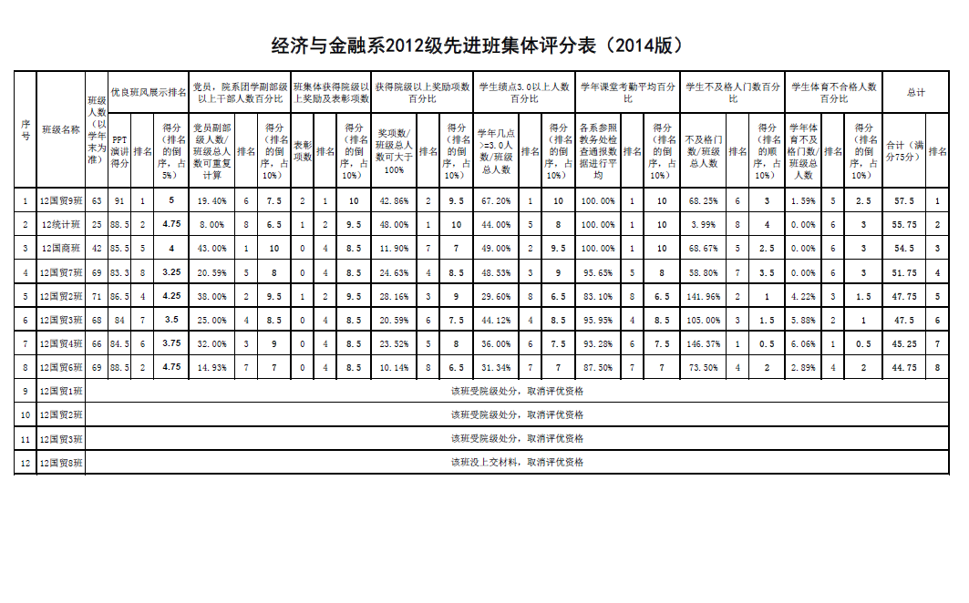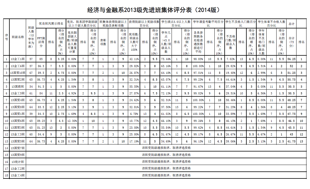 经济与金融系优秀先进班集体评选结果