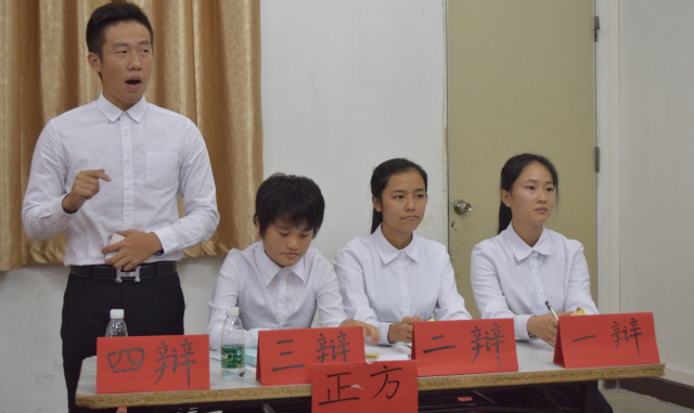 同时间,励志c205第一场的辩手们也正在唇枪舌战。正方金工11与反方国贸4围绕辩题“父母应让孩子保持童心还是尽早进入社会”展开辩论。正方认为应让还循序渐进地成长,而反方则“尽早进入社会才能抢占先机”为核心展开辩论,双方均辩论地头头是道,令人信服。