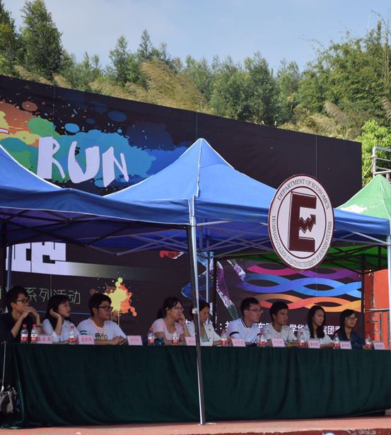 2015年11月22日上午,经过一天半精彩绝伦的角逐,广东财经大学华商学院经济与金融系运动会正式落下帷幕。莅临本次闭幕式的嘉宾有:经济与金融系副主任王丽忠教授,经济与金融系团总支书记宋元跃老师,经济与金融系辅导员刘甜玲老师,经济与金融系团总支副书记陈嘉俊,经济与金融系学生分会主席何晓茵,经济与金融系学生分会副主席蔡佩莹、游振杰,经济与金融系学生分会副主席兼记者团副团长王洁婉,以及经济与金融系记者团副团长谭衍亮师兄。