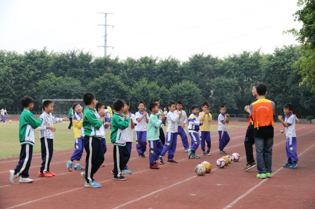 蔚蓝的天空下,稻草班的孩子们正陶醉于编织稻草,而与此同时,兴趣班的孩子们也在与志愿者们欢快地玩耍着。绿茵草地上,足球班的孩子们在认真地练习着传球;灰白水泥地上,篮球班的孩子们在志愿者的指导下练习投篮,虽然活动在不同的地方开展,但在同一片蓝天下,他们都收获满满。