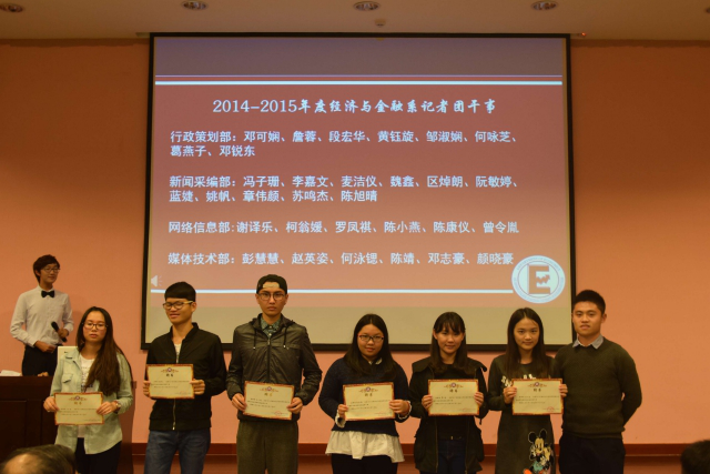 2014—2015学年经济与金融系表彰大会 华商十年,历经蜕变。风雨兼程,育人不倦。没有昨天的辛勤耕耘就没有今天的硕果累累。在华商学院十周年校庆到来之际,我们经济与金融系在12月1日晚上6:30在国际会议中心四楼汇报厅隆重召开2014—2015学年经济与金融系表彰大会。