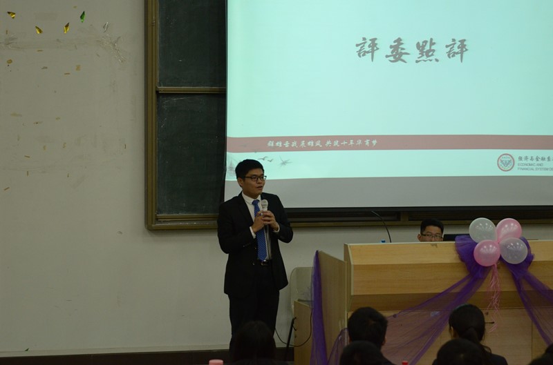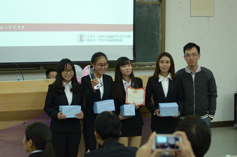 出席的评委有:经济与金融系辩论队顾问张煜彬和刘斌,经济与金融系辩论队队长李绮盈,经济与金融系辩论队副队长朱叶青、吴维隆。
