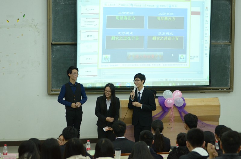 接下来的明星赛同样精彩。由正方钟丽丽师姐和最佳辩手“剩女之过在于男”vs反方郑健灿师兄和最佳辩手“剩女之过在于女”展开辩论。在随后的辩论环节中,双方更是争锋相对、步步紧逼,现场气氛迅速升温。