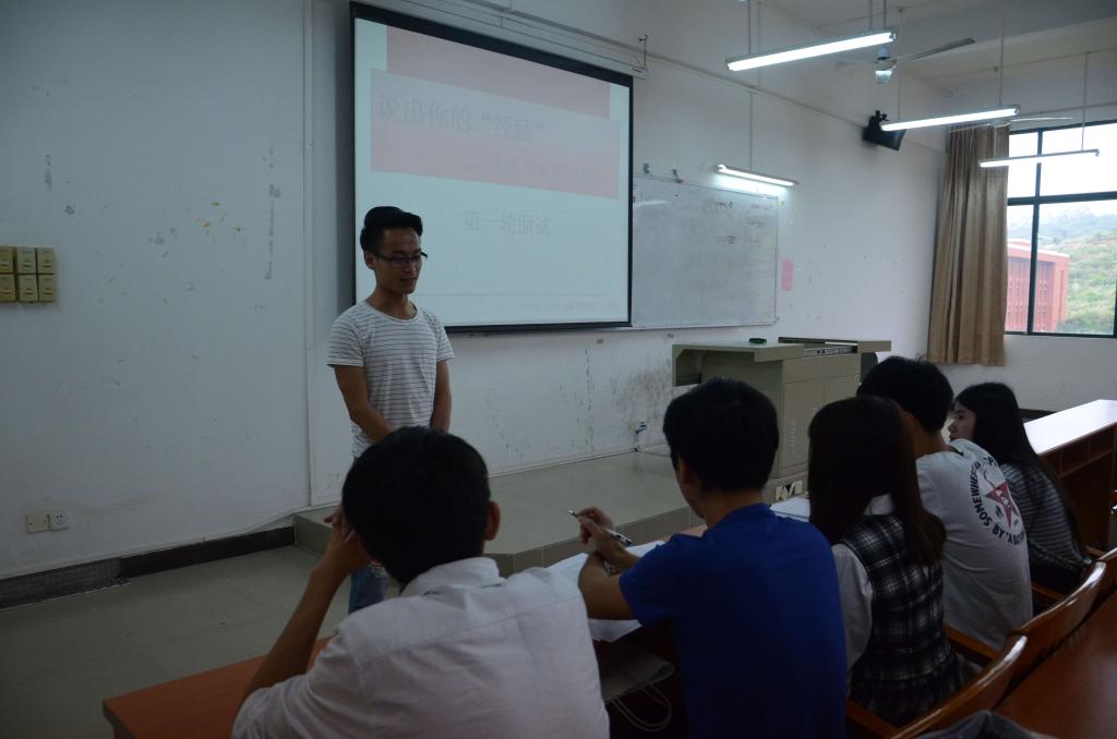2016年4月19日下午14时,经济与金融系“说出你的‘经励’”火炬手系列讲座抽选主题个人面试在厚德楼C506火热进行。