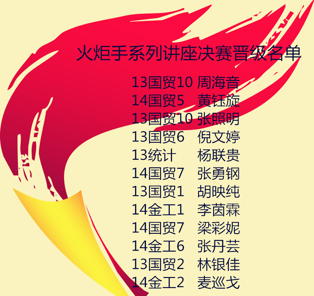 现在公布火炬手系列讲座决赛晋级名单(排名不分前后哟~)