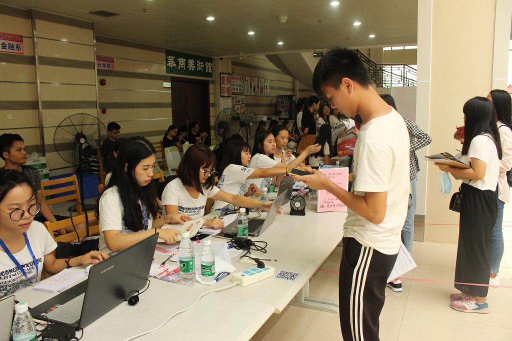 迎新第二天,华商的每个角落依然随处可见我系老师和团总支、学生会,记者团的工作人员,他们热情地为新生指引道路,提携行李,解答他们在报到注册遇到的各种问题。除此之外,我系在图书馆报到处开设了绿色通道,专门帮助家庭经济困难的学生实现大学梦想。