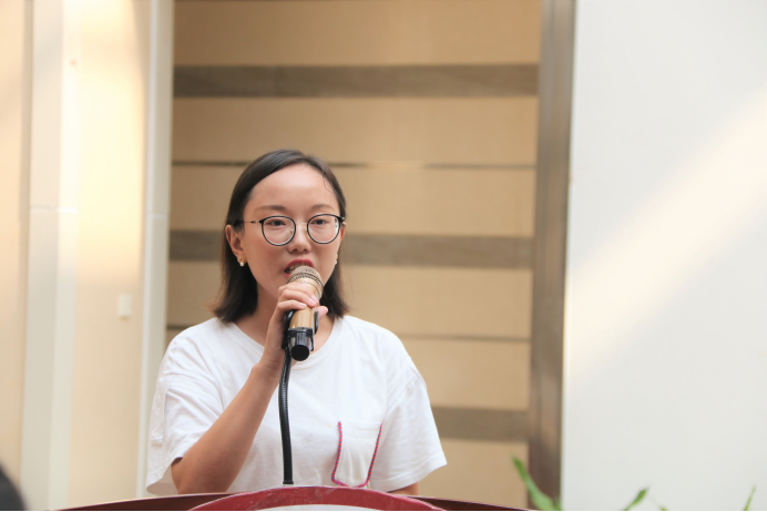 而后我系分管教学工作张真副主任发言,她希望我们新同学开心生活的同时,作为年轻的一代,要做到三点:第一,要敢想,有想法有创新思维才能志存高远,才能够有新的起点。第二,要敢做,敢做才能激情活跃。第三,要敢破,只有敢破,才能突破自我,创新发展。诚望各位新同学享受大学生活,也能快乐学习。