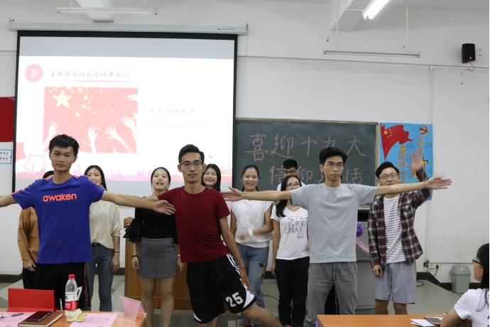 第二组由16金工2班,17国贸6班代表上台发言,小组前期进行多次宣传。其次还举行团生活动,包括嘻哈“十九大”,对话你我、主题联谊大会、“初心不减,信仰常伴”三项活动。在这些活动中,我们不禁感受到十九大所带的魅力。