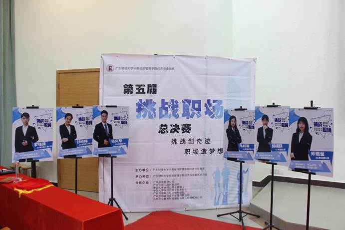 面对未知的职场氛围、职场知识、职场竞技,我们或许会迷茫,又或许存留几分期待。面对毕业后的最大课题——就业,在挑战中创造奇迹,在职场中实现梦想,经济与金融系第五届挑战职场大赛的总决赛于2018年5月15日18:30在励志楼B207教室如期而至。本次大赛我们有幸请到了中国人寿保险股份有限公司广州市分公司萝岗营业部人事部经理张继琼女士、裴春光先生,广州正茂印刷有限公司聂笃友总经理、周彩云经理,广州市邦弈泽资产管理有限公司黄炽斌营销总监,陈志烽项目总监,广州市增城科栎达塑料制品有限公司唐伦旺总经理。经济与金融系团总支书记宋元跃老师,团总支副书记郑昊铿,学生会主席廖碧柔,团总支书记助理黄誉承、邝可怡,院学生教学信息中心部长黄晓娟、吴子浩。