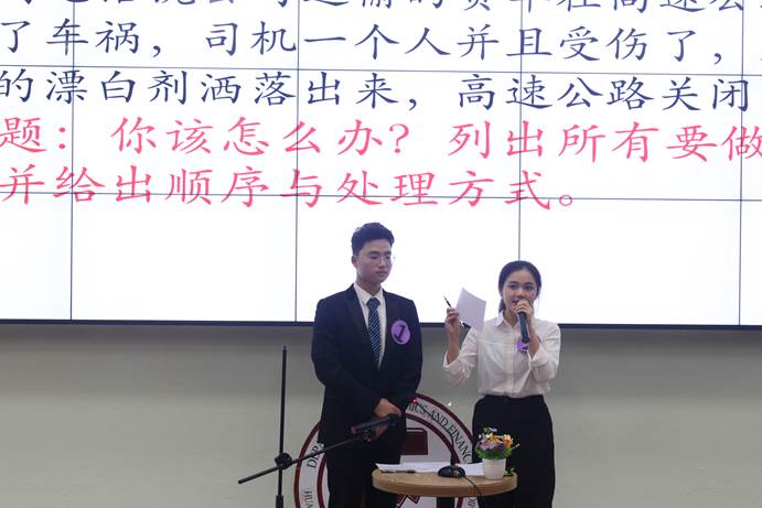 激动人心的情景问答开始了,选手们两两搭配,互问互答,考验选手们的临场应变能力和总结答辩能力。在具体情境中共同讨论,共同分析,合作解决,针对问题给出解决措施,最后分别发表自己的看法。