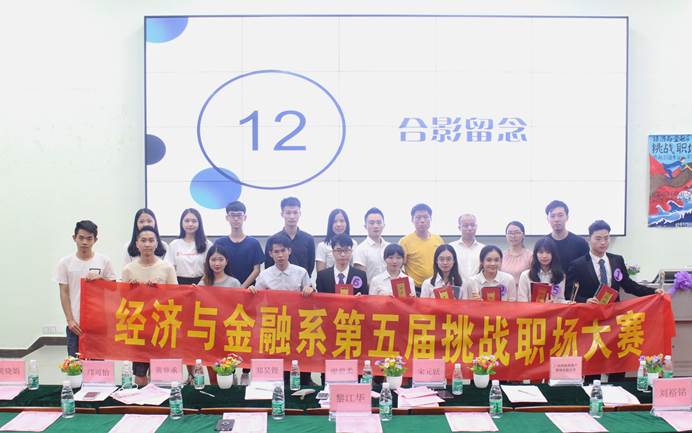 一声快门按下,经济与金融系第五届挑战职场大赛就圆满结束了。职场对于大学生是一个未知的挑战,也是大学生出社会后的一个巨大课题,勇敢前行,无畏艰难,坚持不懈才能立足职场。大学期间,我们当不断摸索,不断挑战,不断实施,与其听任生命枯荣随缘,空使岁月的烟尘湮没生命的芳华与鲜亮,不如在青春最好时,主动面对一次次的挑战,主动迎战每一个难题,让未知臣服,让奇迹汗颜,让青春无悔。