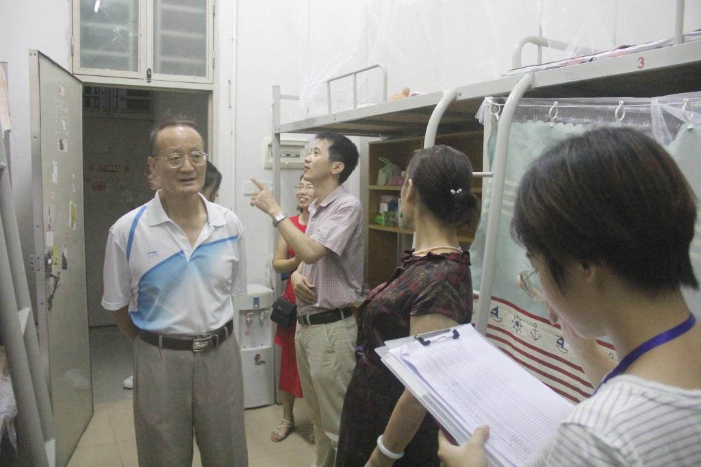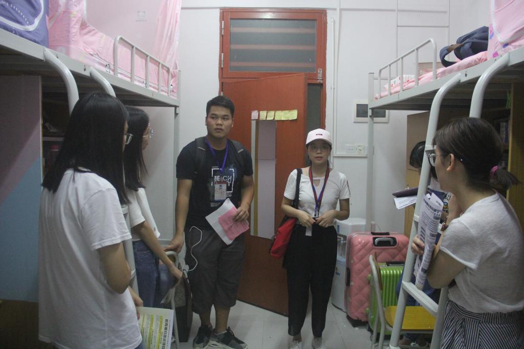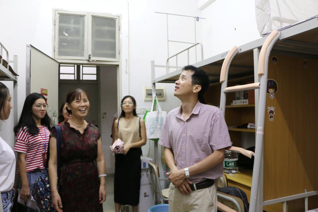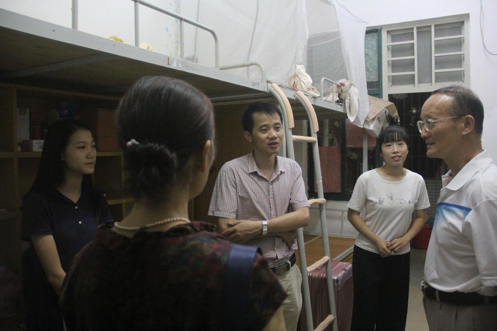 走访宿舍的过程中,我系领导和老师深入的了解新生的各方面的情况,亲切地与新生们交谈,耐心地向他们介绍学校的基本情况,同时也解答新生提出的一些问题,询问他们是否还习惯学校的生活。