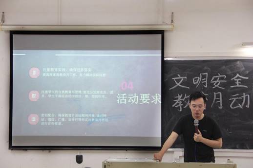 为了积极响应文明安全纪律教育月的号召,提高全校师生的安全意识,我系为此开展“文明安全纪律教育”的教育活动,动员全体师生共同参与,展开动员大会、检查宿舍等活动。
