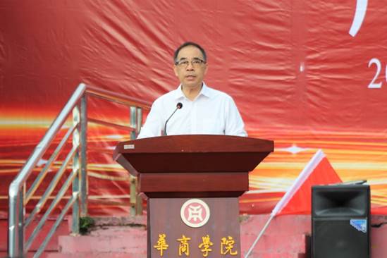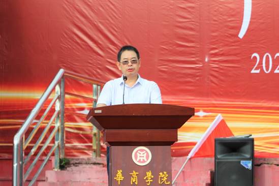 郭银华执行校长说到,疫情之下的2020级是注定不平凡的一届学生,昨日之坎坷终成今日之战歌,我们应该把掌声送给经过拼搏和努力通过“高考”和“疫情大考”的同学们。同时今年将迎来广东财经大学华商学院建校十五周年,学校始终坚持“创办名校,育华夏英才”的办学理念,秉承“厚德、励志、博学、创新”的校训不断发展,欢迎所有新同学们一起与华商学院一起见证成长,一起续写荣光。最后他向同学们提出三点希望,希望同学们弘扬抗日精神、厚植家国情怀;恪守学生本分、坚持脚踏实地;塑造健康人格、坚持知行合一、躬耕实践。同时他也祝愿新生在大学生活中乘风破浪,学有所成。