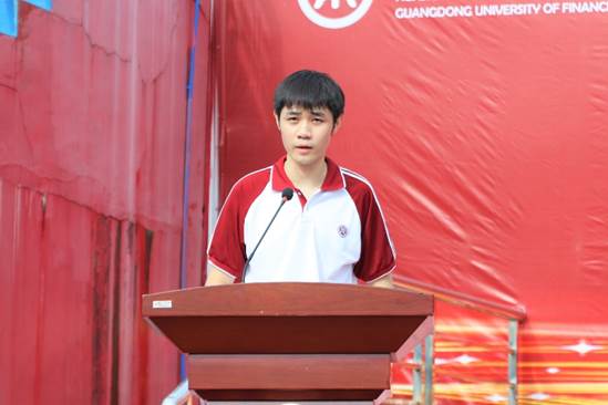 邹新月副校长代表广东财经大学向在场的各位领导和老师表示问候,对2020级新生表示热烈的欢迎。在讲话中他向我们提出了三点希望:第一要志存高远,心系家国,要心怀大我,做对社会有贡献的人。第二要勤勉认真,努力学习,加强自我修炼、自我提升,成为能够承担新时代责任的栋梁之才。第三要勇于实践,将所学运用在实践中,练就实在的本领,敢于担当起新时代的责任,书写属于自己的灿烂新篇章。