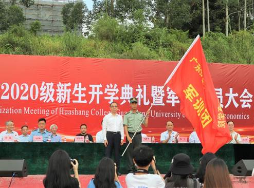 2020年9月21日上午8:00,广东财经大学华商学院2020级新生军训动员大会暨开学典礼在我校西区操场隆重举行。出席本次大会的领导和嘉宾有:华商教育集团董事长廖榕就董事长,广东财经大学副校长邹新月教授,广东财经大学华商学院执行校长郭银华教授,学校党委苏宁书记,增城武装部童胜雄中校,2020级新生军训团梁文财团长,华商学院副校长王列耀、副校长张捷、副校长陈美华、副校长钟森文、副校长王锦秀、副校长王力东,军训团领导小组成员及各二级院系负责人。本次军训动员大会由华商学院王锦秀副校长主持。