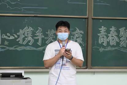 活动负责人姚腾飞同学向大家讲解此次活动的目的是为了向无数在前线披荆斩棘的抗疫勇士学习和致敬,用自己力所能及的方式在新冠疫情的防控之中发挥正能量,为战胜疫情助力。