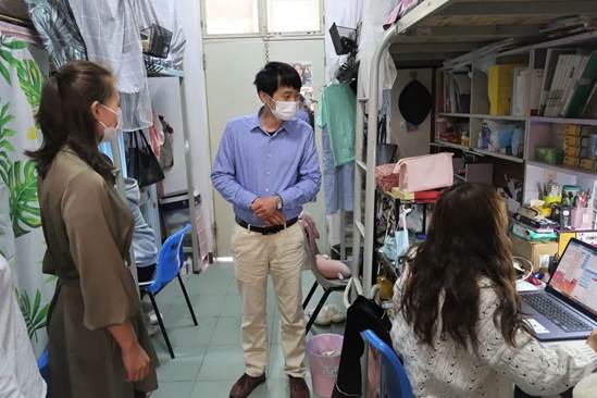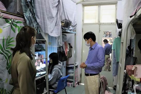 在宿舍走访过程中,老师们询问了同学们到校期间遇到的问题,同时强调一定要注意寝室安全,不使用违规电器,不晚归,要注意保持寝室的整洁,防止细菌滋生。