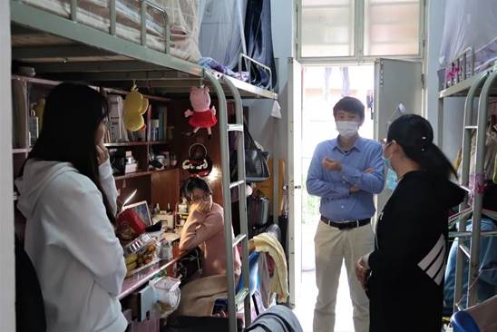 新学期伊始,根据学校寒假返校工作的总体安排,为更好的了解学院学生返校情况及假期生活状况,充分落实疫情防控工作,营造良好的学习环境。2021年3月2日下午16:00,我系学工副主任邱会锋和辅导员走访学生宿舍,深入了解、关心、鼓励学生,为学生送去温暖与关怀。