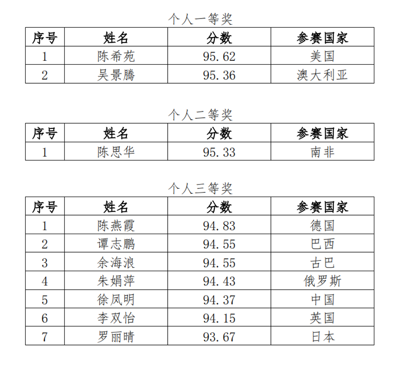 获奖名单