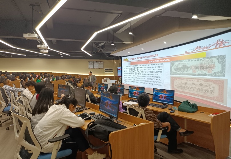 讲座中,刘院长为师生深刻讲解了中国人民银行成立的背景、中央苏区开展金融工作的必要性,以及改革开放后金融体制改革等内容,指出金融是国家重要的核心竞争力,必须坚持党中央对金融工作集中统一领导,坚特以“为人民服务”为宗旨,金融要把为实体经济服务作为出发点和落脚点。