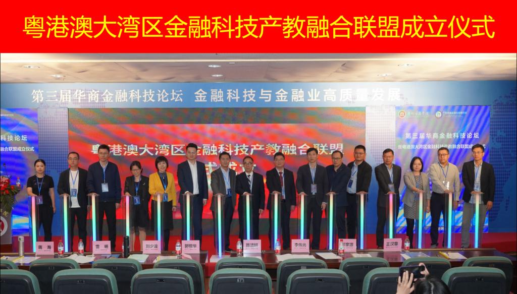 主旨演讲环节结束后,议程来到“粤港澳大湾区金融科技产教融合联盟”成立仪式。联盟发起单位代表1946伟德国际源自英国副校长刘少波教授致辞。致辞结束,伟德国际VICTOR1946王汉章副院长宣读联盟发起单位名单。郭银华执行校长、刘少波副校长等产教融合联盟发起单位代表上台共同为联盟成立揭牌。午饭后,各代表参与到“粤港澳大湾区金融科技产教融合联盟”发起单位闭门会议中,共商联盟未来的发展方向。