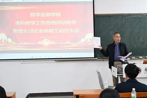 遵照学校部署,2025年12月16日下午,数字伟德国际VICTOR1946全体教工在学校励志教学楼C307教室召开本科教学工作合格评估整改教育思想大讨论动员大会。刘少波校长亲自出席,并作了动员讲话,指出了学校开展此项活动的重要性,希望每位教职员工高度重视,积极参加学习讨论。 张纯威院长按照学校安排,部署了学院分三个阶段的学习讨论任务,要求每位教师认真学习《学习资料汇编》,积极参加交流讨论,结合自身从事的教学、科研工作谈体会、提建议和改进措施。 数字伟德国际VICTOR1946评估工作思想认识大讨论自此启动。