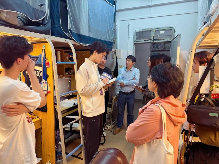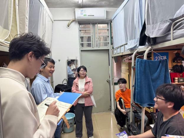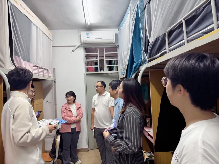 为深入贯彻落实学校“一站式”学生社区建设要求,严格执行中层干部联系学生宿舍工作制度,进一步筑牢校园反诈安全防线,强化学生社区服务与管理,切实倾听学生心声、了解学生思想动态与解决学生需求,2026年4月1日18:00,学校办公室蒋大锐主任、工会常务副主席黄小兰、共建学院负责人邱会锋,以及学生处老师张子柔、社区辅导员张文杰及社区楼长、层长,深入西12、西13栋学生宿舍,开展安全隐患排查、反诈宣传教育及学生诉求倾听交流专项走访活动。 01 排查隐患,筑牢安全“防火墙” 安全无小事,防患于未然。走访团队一行深入学生宿舍一线,以“实地排查+面对面交流”的形式,扎实开展各项工作,仔细查看了宿舍的用电安全、消防设施及卫生状况,对违规使用大功率电器、私拉乱接电线等安全隐患进行了重点排查。针对检查中发现的问题,老师们现场提出整改意见,督促学生立即整改,引导学生树立“安全第一”的意识,自觉遵守宿舍安全管理规定,并叮嘱同学们要时刻紧绷安全这根弦,共同营造安全、整洁、文明、有序的住宿环境。 02 反诈宣传,守护学生“钱袋子” 随着网络诈骗手段层出不穷,反诈宣传教育成为此次走访的重中之重。走访过程中,中层干部与社区辅导员通过面对面交流、发放宣传资料等形式,向同学们详细讲解了常见的电信网络诈骗类型及防范技巧。老师们结合真实案例,特别提醒同学们要警惕“刷单返利”、“冒充熟人”、“虚假购物”等诈骗陷阱,切勿轻信陌生来电,不随意透露个人信息。强调“不轻信、不透露、不转账”反诈口诀,切实提升学生的反诈警惕性和自我保护能力,筑牢校园反诈安全屏障。“同学们,一定要下载‘国家反诈中心’APP,遇到可疑情况第一时间联系辅导员或保卫处。”一句句贴心的叮嘱,不仅增强了同学们的防诈骗意识,更为大家的财产安全穿上了一层“防护衣”。 03 倾听心声,搭建师生“连心桥” “同学们最近学习压力大不大?”“生活上有没有什么不习惯的地方?”在走访中,老师们与同学们围在一起,拉家常、话成长。在与学生的面对面交流中,各位领导老师与学生亲切谈心,仔细询问大家的学习生活情况、专业学习困惑及日常住宿需求,认真倾听学生在社区服务、校园管理等方面的意见和建议。针对同学们提出的困惑,老师们逐一记录并给予耐心解答,需后续协调的详细记录并反馈给相关部门处理,明确整改方向。这种“面对面、心贴心”的交流,拉近了师生之间的距离,让同学们真切感受到了学校大家庭的关怀与温暖。 此次学生宿舍走访活动,不仅是对学生宿舍安全隐患的一次“大体检”,更是一次反诈知识的“大普及”和师生情感的“大交流”。这也是学校落实“一站式”学生社区建设的具体实践,是中层干部深入学生、服务学生的重要举措,有效排查了宿舍安全隐患、强化了学生反诈意识,更精准掌握了学生需求。下一步,将持续深化“一站式”学生社区建设,常态化开展宿舍走访、精准服务工作,把关怀送到学生身边,把问题解决在一线,以更扎实的举措做好学生社区服务与管理,为学生成长成才保驾护航。让我们携手共进,共建安全、温馨、和谐的“一站式”学生社区!