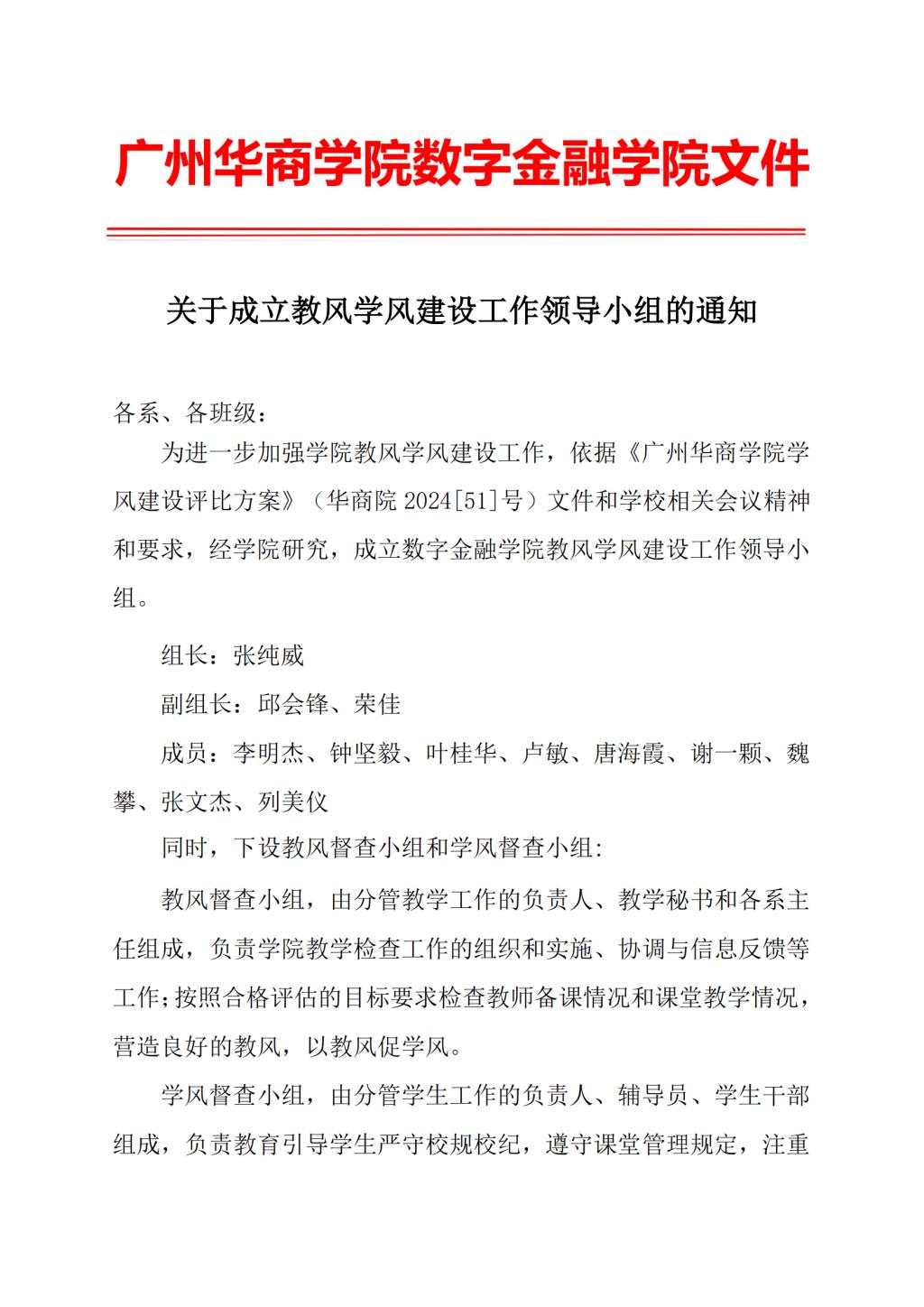 关于成立教风学风建设工作领导小组的通知