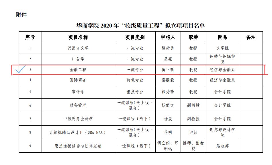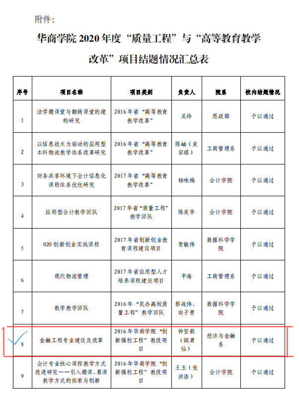 一、金融工程专业简介 2013年,根据学校的统筹安排,经济与金融系成功开设了金融工程专业。经过七年的发展,金融工程专业已成为校级重点建设学科,2016年,金融工程专业顺利通过了专业学位授予权的合格评估。 截至2024年5月本专业累计培养毕业生超过2000人,为社会输送了大量的实用型专业化优秀人才。2019年起,为了培养具有全球化视野的应用型人才,金融工程专业又增设了特色班(双语班)。专业课程建设也取得了长足的进步,建设了如金融学为校级一流课程(项目建设中),国际金融为校级重点课程、校级精品课程、省级精品资源共享课程,证券投资学为省级翻转式教学改革课程。 金融工程专业经过几年建设已经形成了一支实践教学经验丰富、具有一定科研能力的师资队伍,拥有具有国家高级理财规划师、国际金融师CFP、高级经济师、经济师、证券从业资格等职业资格证书的双师型教师9人。在金融学、商业银行管理、证券投资分析、金融工程等方面的科教研成果逐年增长,近5年完成省级以上教学教改课题7项,省部级以上纵向科研课题6项,社会横向科研课题12项,其他课题2项。累计发表学术论文26篇,主编出版教材3部。 目前,金融工程专业开设了大量的实验实训教学,人才培养方案中实验实训教学所占比例从前几年的27%上升到当前的31%,实验教师均能严格执行实验实训课程教学大纲,金融工程专业实验课教学任务通知书下达十门以上,在统计区间内全部开出,开出率达到100%。受众学生数达六千多人次。开设的综合性、设计性实验课程占总课程比例超30%,促进了学生知识技能的综合运用和创新应用能力的提高。 目前,金融工程专业已先后建立了中国银行增城支行、中国建设银行增城支行、广发证券广州分公司、东莞证券等实践教学基地19个,可以同时容纳600多学生实习;金融工程专业自开设以来,我们做了大量的前期工作,并积累了一定的经验,这些都为本专业建设为一流专业奠定了良好的基础。 专业负责人及专业建设团队 专业负责人:张芳教授 系副主任:荣佳 唐海霞 课程建设团队:本课程教学团队由2名教授、1名副教授、12名讲师、6名助教构成,是一支教科研能力强,职称结构合理、年龄及学历结构良好而稳定的高素质师资队伍。 三、专业建设特色 在满足《金融学类教学质量国家标准》的基本要求之外,本专业依据自身定位和办学特色,制定不低于该标准的教学质量标准,并积极探索推进教学改革与创新不断提高我系的金融学科建设与发展的整体水平,多年来,经过专家们的不断论证、教师们的不断打磨,本专业的课程体系设置日趋合理,知识体系构建较为完整。金融工程专业的专业基础课程有政治经济学、宏观经济学、微观经济学、计量经济学、统计学、会计学、财政学、金融学,专业核心课程有证券投资学、国际金融、公司金融、金融衍生工具、金融工程学、金融计量学、金融风险管理、风险投资、互联网金融。围绕核心课程,又形成了相对完整的专业课程体系。目前,《金融经济学(双语)》是校级双语教学课程,《金融学》为校级一流课程(建设中)、省级精品课程(课程负责人黄正新教授在母体学校曾主持本课程的省级项目),《证券投资学》为省级翻转课堂教改课程。其中,通识教育71学分,占44%。在保障理论课教学基础上,构建了实践课程体系,以实验教学、社会实践、专业实习、毕业实习I(校内仿真综合实习)、毕业实习II、毕业设计(论文)为主的实践教学体系,实验实训课程(含《证券投资学》、《金融工程学》、《个人理财实务》等11门实验实训课程。)、社会实践(含社会调查、实习、劳动教育等),论文写作(含毕业论文、学年论文等)。本专业注重构建创新创业课体系,培养学生的创新精神。其中创新创业课程体系主要由风险投资、创业管理、互联网金融3门课组成。在跨学科跨专业课程方面,本专业设置了金融科技有关的前沿课程,其中有区块链技术及应用、Python程序设计、数据分析与数据挖掘等。 本专业在教材建设上遵循“两条腿走路”的方针,在选定上坚持先进性原则,明确要求任课教师选用教材应本着权威性、适用性及先进性的原则,一是选用教育部规定的最新的统编教材,或者21世纪教材、十一五、十二五规划教材,二是选用本系教师的自编教材,并以此教材为基础,结合教学实际,建成由文字教材、电子教材、网络课件、试题库、系列参考书和辅助教材等构成的立体化教材体系。近两年来,金融工程专业教师编写并且持续修订出版了几部在教学内容上更具时效性和前沿性的实验实训及专业教材,其中包括:《金融学》(黄正新教授主编)、《证券投资学》(荣佳、钟坚毅主编)等。 建设成效展示 (一)学生历年金融比赛获奖情况展示 2020年金融挑战赛全国一等奖 获奖团队风采 2021年金融挑战赛全国一等奖 2022年高校经济决策虚仿实验大赛二等奖 大学生基金组合模拟大赛全国二等奖 全国大学生金融科技创新能力一等奖 历年教学成果展示 金融产研工作室 理财投资专业实验室 教研教改课题 证券投资学自编教材 证券投资实验室 智慧商业银行实验室 历年教科研项目展示