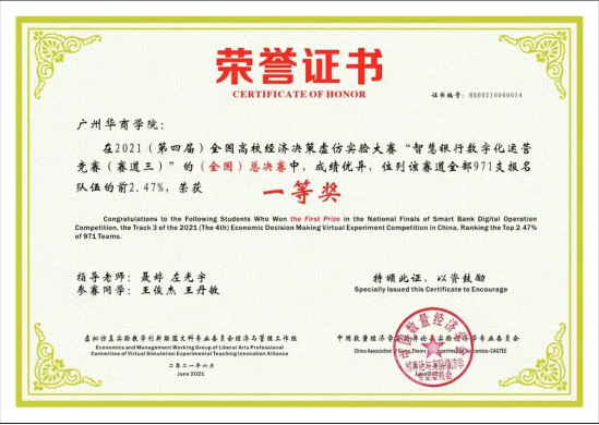 金融科技专业教师指导学生团队荣获第五届全国高校经济决策虚仿实验总决赛(赛道三)一等奖。