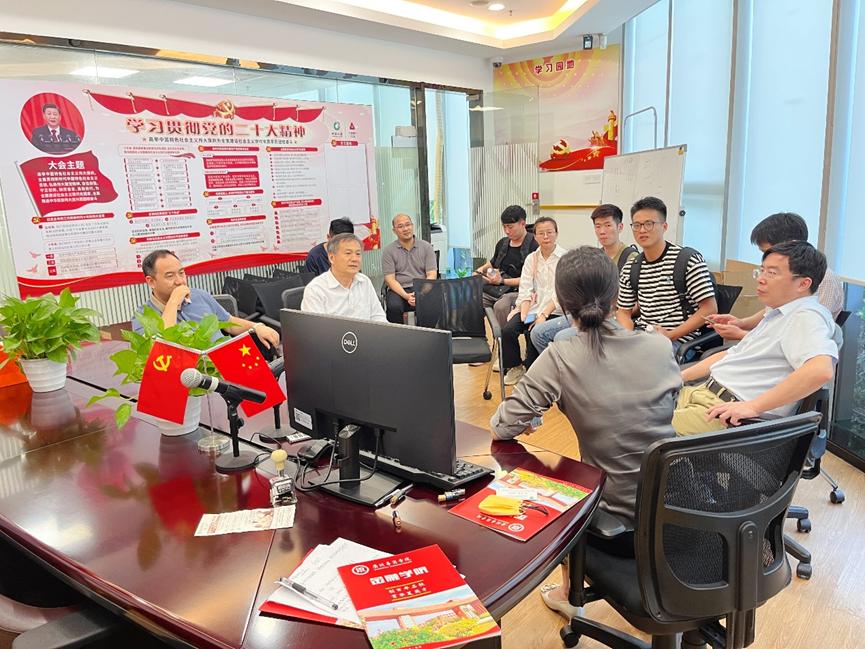 在广发银行,我们参观了广发银行的党建文化,并就高质量党建引领企业文化和高质量发展进行了详细介绍和座谈分享,张丹行长表示企业始终坚持党建融合,注重人才培养,全力稳增长、抓项目、促投资,在经济发展中彰显担当本色。刘湘云院长也表示,我们将来也可以开拓思路,围绕创新人才培养、产教深度融合、协同创新发展等方面开展深度合作。邱会锋副书记与广发行领导就“学习贯彻党的二十大精神,以党建共建为引领,推动校企党建共建展开合作”等进行了交流和探讨。