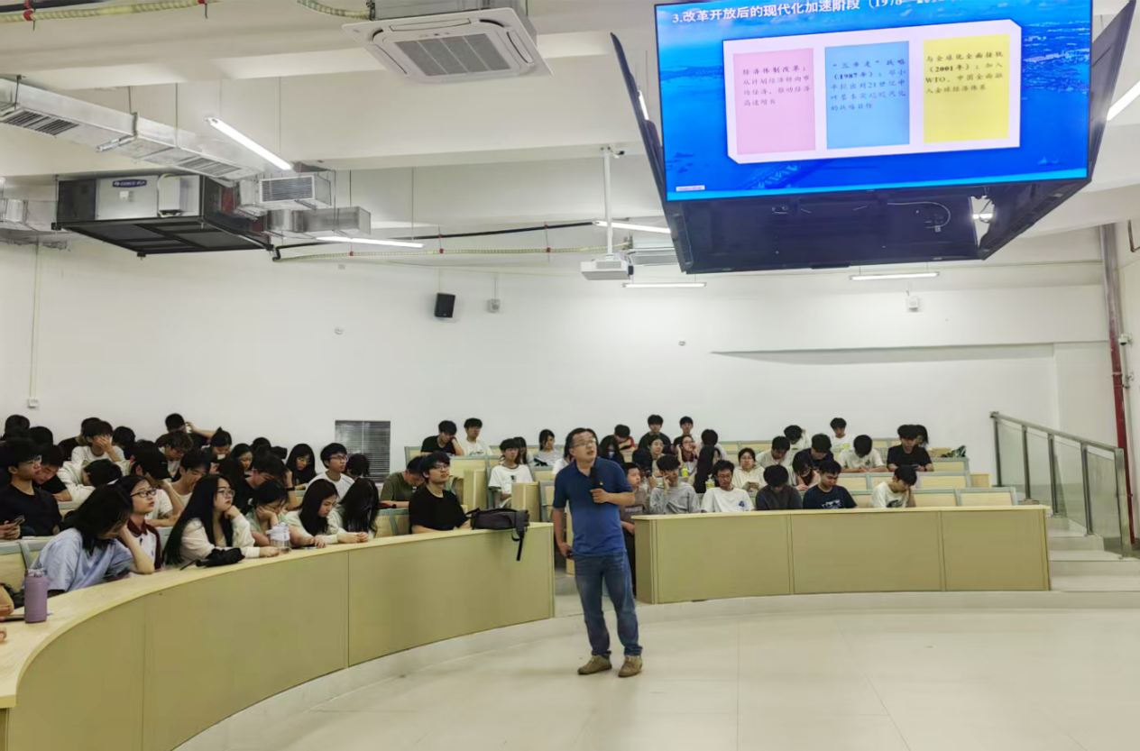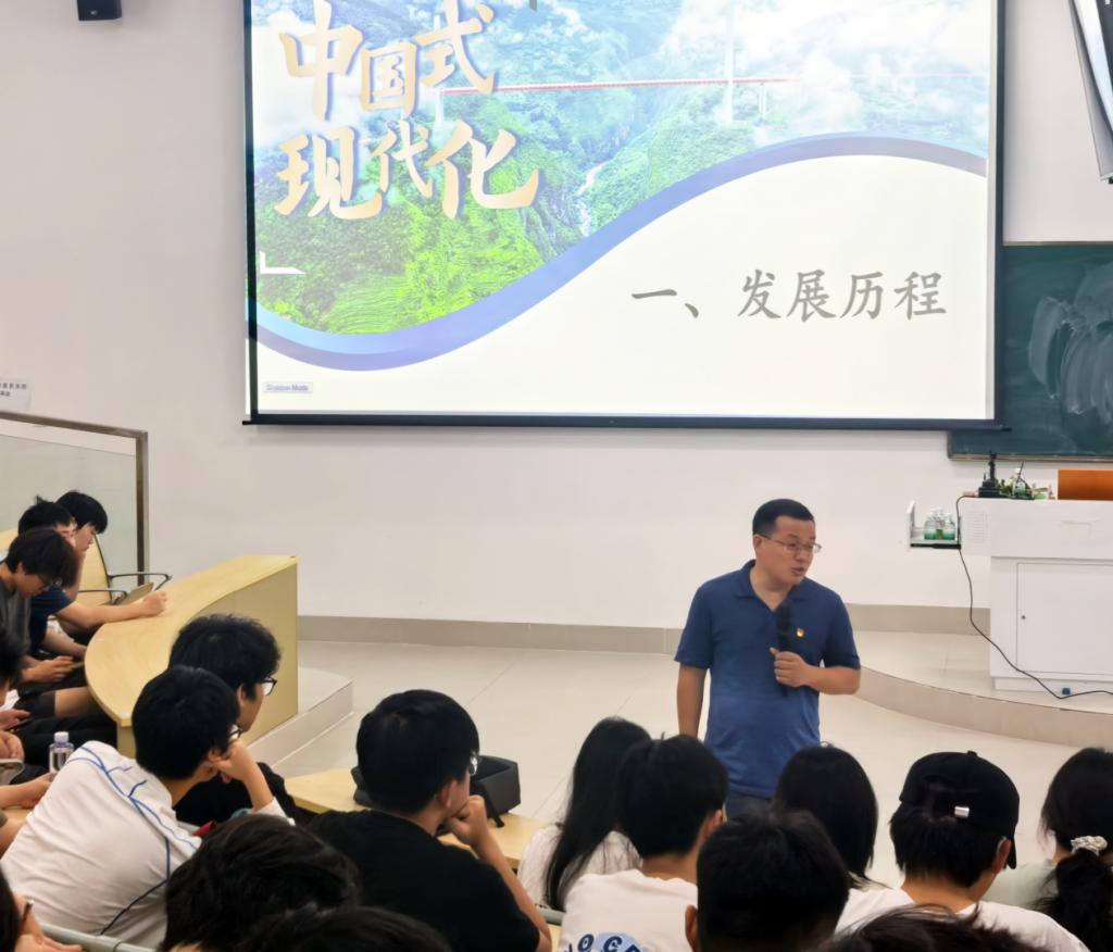 为深化学生对中国式现代化的理解,坚定青年学子跟党走中国特色社会主义道路的信念,数字伟德国际VICTOR1946于2025年4月25日上午在肇庆校区16号楼212教室开展思政教育第一课。本次课程由数字伟德国际VICTOR1946党委书记李明杰副教授主讲,面向2024级大一新生,以“中国式现代化的发展历程及主要特征”为主题,展开了一场深刻而生动的思政教育。 李明杰副教授从现代化的普遍概念切入,指出其作为人类社会从传统文明向现代文明转变的历史过程,具有世界性的意义。他带领同学们回溯中国式现代化的发展历程,从近代中国的现代化探索讲起,详细阐述了洋务运动、戊戌变法、辛亥革命等重要历史事件的背景、目标及局限性,强调这些探索虽未能彻底改变中国的命运,但为中国式现代化的发展积累了宝贵经验。 进入新时代,中国式现代化迈入全面深化阶段。李明杰副教授深入解读“五位一体”总体布局、国家治理现代化、共同富裕目标、科技自立自强等新发展理念和实践路径,让同学们清晰地认识到中国式现代化在经济、政治、文化、社会、生态文明等各个领域的协调发展,以及在实现全体人民共同富裕、促进人与自然和谐共生等方面的独特优势。 他特别强调中国式现代化具有五个鲜明特征:人口规模巨大、全体人民共同富裕、物质文明和精神文明相协调、人与自然和谐共生、走和平发展道路。这五个特征体现了中国式现代化与西方现代化道路的显著区别,彰显了中国特色社会主义制度的优越性。 授课过程中,李明杰副教授与同学们积极互动,引导他们思考中国式现代化对个人发展和国家未来的重要意义。他鼓励同学们将个人理想融入国家发展大局,在中国式现代化建设中贡献自己的智慧和力量。 本次数字伟德国际VICTOR1946思政第一课使2024级新生对中国式现代化有了全面而深刻的认识,增强了他们的民族自豪感和历史使命感。同学们纷纷表示,将努力学习专业知识,提升自身素养,积极投身于实现中华民族伟大复兴的实践中,以实际行动为中国式现代化建设添砖加瓦。数字伟德国际VICTOR1946将继续推进思政教育与专业教育的深度融合,助力学生在时代变局中找准坐标,以创新之力续写大国崛起新篇章!