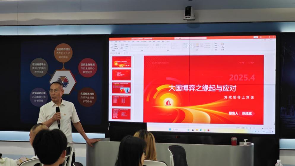 为深入贯彻新发展理念,持续推进国家创新体系建设,强化战略科技力量,加速创新型国家建设进程,同时厚植广大青年爱党爱国爱社会主义的深厚情怀,坚定青少年跟党走中国特色社会主义道路的信念,数字伟德国际VICTOR1946立足专业特色与学科优势,于 2025 年 4 月 22 日在厚德楼C301教室成功举办主题为“大国博弈之缘起与应对”的数字伟德国际VICTOR1946思政第一课。本次课程由数字伟德国际VICTOR1946院长张纯威教授担任主讲,为师生们带来了一场思想与知识交融的盛宴。 张教授指出,中国以和平发展姿态迈向世界舞台中心,经济规模、科技实力等领域的跃升引发全球格局深刻调整。中美博弈本质是守成大国与新兴大国在国际秩序重构中的深层较量。 张教授以汇率波动、资本流动等案例,揭示金融领域作为大国博弈“前沿阵地”的关键作用。从美国通过美元霸权收割全球财富的历史逻辑,到当前对中国金融市场的渗透与遏制,深入浅出解析金融安全对国家发展的根本性意义。 面对复杂局势,中国始终坚持“不惹事、不怕事”原则。张教授从货币政策独立性、外汇储备管理、人民币国际化等维度,阐述我国如何通过完善金融监管体系、深化国际合作应对外部冲击,展现“稳字当头、以我为主”的应对智慧。 “金融强国建设是实现民族复兴的重要支撑。”张教授强调,需从三方面发力: 科技赋能:推动数字金融、区块链等技术与实体经济深度融合,提升金融服务效率; 制度创新:健全资本市场基础制度,扩大高水平制度型开放; 人才培育:培养兼具国际视野与家国情怀的金融人才,筑牢创新发展根基。 授课尾声,张教授寄语华商青年学子:“大国博弈的终局,取决于当代青年的眼界与行动。”他鼓励同学们将专业学习与国家战略结合,以扎实学识破解“卡脖子”难题,以开放心态讲好中国金融故事,在服务“双循环”新发展格局中彰显青春力量。 本次思政课以宏大视野串联理论与现实,既是一堂深刻的国情教育课,更是一次点燃青年奋斗热情的思想动员。未来,数字伟德国际VICTOR1946将持续深化“思政+专业”育人模式,引导学子在时代变局中找准坐标,以创新之力续写大国崛起新篇章!