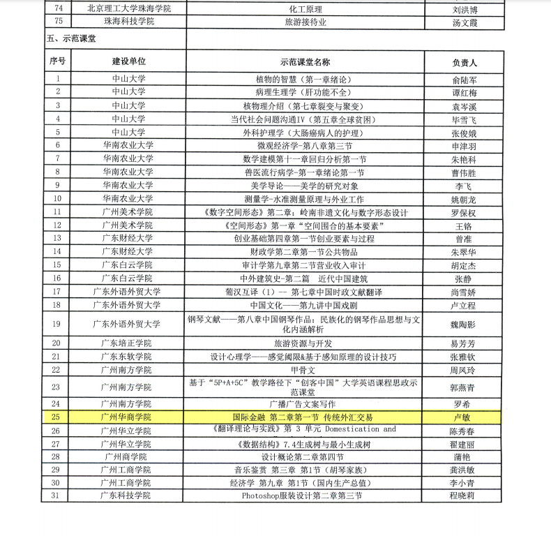 一、课程主要内容简介 本课程主要讲解了外汇与汇率、汇率制度与外汇管理、国际账户与宏观经济分析、国际金融市场、外汇交易、外汇风险管理、国际资本流动及国际货币体系等八部分内容。该教学内容与我校确定的“培养具有创新精神和实践能力的金融应用型专业人才”课程教学定位高度一致。 二、课程建设情况 课程负责人自2011年以来持续地对《国际金融》课程进行建设和改进,目前已建设成为广东省一流本科课程。十三年来该课程主要建设历程如下图所示。 课程建设负责人及课程建设团队 课程建设负责人:卢敏 副教授 金融系主任 课程建设团队:本课程教学团队由3名教授、2名副教授、2名讲师、1名助教构成,是一支教科研能力强,职称结构合理、年龄及学历结构良好而稳定的高素质师资队伍。 四、课程学习平台 课程所在平台及网址:https://mooc1-1.chaoxing.com/mooc-ans/course/217491021.html 课堂教学实录视频:https://jwc.gdhsc.edu.cn/info/2115/6550.htm 五、课程建设特色 1.确定了“学为主体,教为引导,环境育人”的教育理念。“学为主体,教为引导,环境育人”是课程负责人一以贯之的教育理念。教学过程中课程建设团队充分发挥各种信息技术手段的作用,利用教学平台积累的过程数据、教学图片和课程视频资料等扎实地支撑了该课程的建设成果。 2.明确了“实现三种能力”的高阶目标及“3+4+3”的思政教育主题。本课程教学团队把“3种价值观+4种品质+3种情感”的思政元素融入合适的章节内容作为育人目标,注重金融精英人才职业素养的养成。 3.实施了“课前任务引导、课中互动内化、课后巩固反思”的三步曲教学活动。通过“课前任务引导、课中互动内化、课后巩固反思”的三步曲教学活动营造课内课外育人环境,提升学生自主学习能力。 4.组织了“仿真实验教学、学科竞赛促学”活动。依托我校伟德国际VICTOR1946新建成的“数字金融实验示范中心”开展仿真实验教学。 仿真实验教学情境 平台交易式教学场景 六、课程建设影响力 1.教学现状受师生好评。学生期末考试卷面成绩平均分相较实施混合式教学前提高6-8分,在期末考试试卷难度与之前的试卷难度持平的情况下,学生反馈考试时答题比较“得心应手”。 2.学生参赛积极性提升。学生更加积极地参与各类学科竞赛及创新创业大赛,获得了各类学科竞赛奖状。 3.课程建设意识得以重视。该教学改革的实施有利于促进其他课程组的老师们采取灵活有趣的教学方法提高教学效率,提升人才培养质量。 4.课程思政建设经验得以推广。《国际金融》已被认定为省级课程思政改革示范课堂,为其他课程的思政建设工作提供良好的示范作用。 七、课堂情境展示 图1利用超星平台活动板块的“选人”功能(线上学习情况检测环节) 图12 小组讨论设计一份合理的套期保值方案(线下生生互动环节) 图3 各小组将讨论的方案拍照上传到超星平台并排代表上台解说(线上线下结合的投屏展示环节) 图4 各小组将讨论的方案拍照上传到超星平台并排代表上台解说(线上线下师生点评及师生互动环节) 八、学生学习支持服务 1.导学、督学、促学、助学的组织、模式和落实措施。本课程的学习支持服务活动主要有课前、课中、课后三个教学环节助力学生高效学习。 2.导学、督学、促学、助学的成效。教师利用超星平台及时进行学情分析,改进教学设计的针对性和精准性;利用教学平台开展教学活动,活跃课堂教学氛围;引导学生进入自主学习状态,整体提高教学效果。 九、学生学习评价 本课程采用全过程考核与线下期末考试结合的方式对学生进行评价。过程性考核的评价主要来自超星泛雅平台打分+学习通数据反馈+主讲教师平时考查,线下期末考核成绩主要由教师根据评卷标准打分,过程性考核成绩和线下期末考核成绩各占50%。 十、课程后续建设规划 1.计划继续加强课程推广力度,经过下一个3~5年的建设期,力争获国家级一流本科课程建设立项。 2.资源更新与维护。持续建设、更新、完善线上教学资源;修订本课程自编教材内容,力争建设电子版阅读教材,“扫码式”获取资源方式,创建新型线上SPOC课程;建设课程公众号,多渠道推广,扩大课程教学覆盖面。
